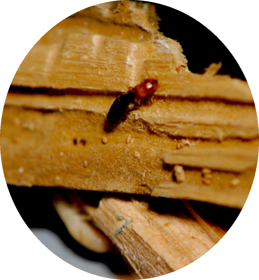 posts, headers, exterior window/door trimming and vigas/latillas. Infestations can also be found in crawl-spaces beneath a structure in the rim joists,